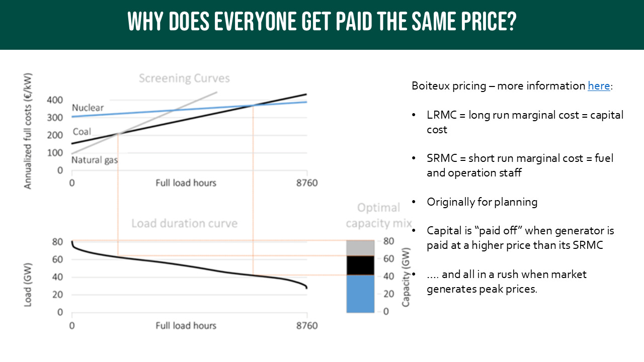 This design goes back to a 1950s economist, Marcel Boiteux who was operating within a planned energy system environment not a market one.