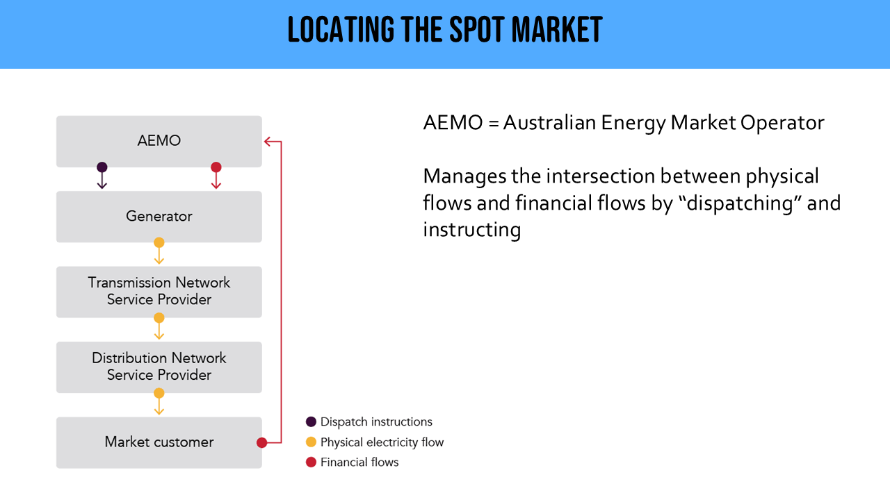 To understand the spot market, you need to understand the role of the Australian Energy Market Operator (AEMO).