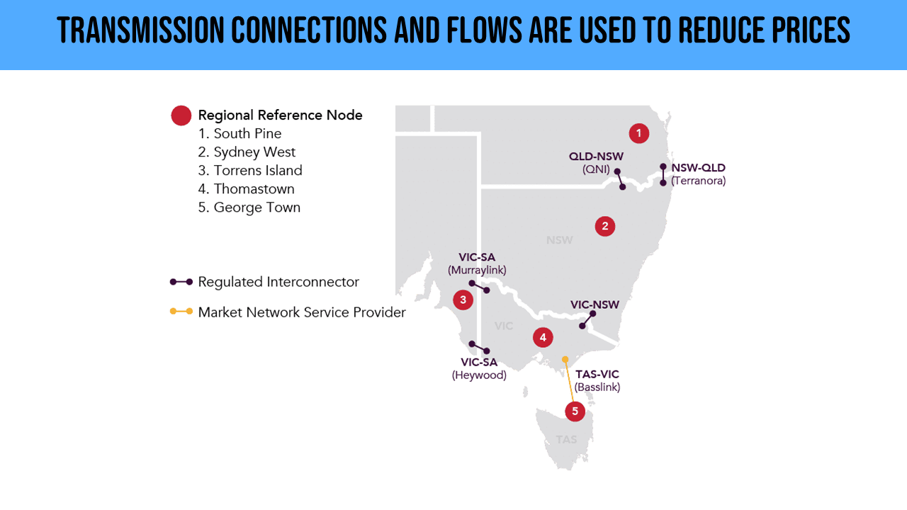 There is some nuance in how prices can flow into different regions. AEMO prices are based on something called a regional reference node.