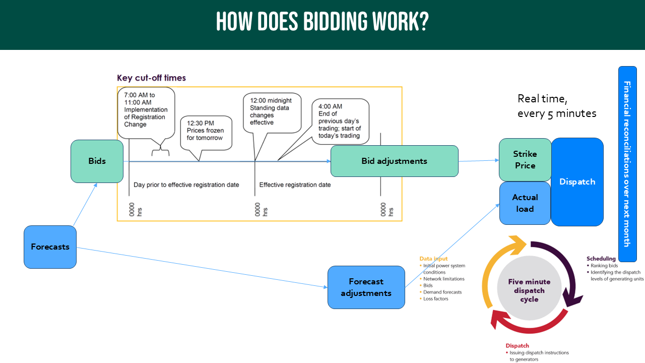 Bidding and forecasts start well before the moment of dispatch.